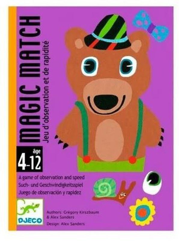 Magic Match è un emozionante gioco di carte in cui l'obiettivo è trovare gli occhi e i dettagli corretti sulle carte degli animali il più rapidamente possibile. Se metti le due carte una sopra l'altra, puoi immediatamente vedere se le hai abbinate correttamente. Questo gioco magico non solo mette alla prova la tua osservazione e velocità, ma è anche una sfida davvero divertente che non è così facile come sembra! Migliora la tua osservazione e velocità divertendoti. Sei pronto a mettere alla prova la tua velocità e le tue capacità di osservazione? Con il magic match di Djeco il divertimento è assicurato! Questo emozionante gioco di carte mette alla prova la tua capacità di trovare rapidamente occhi e accessori che corrispondono ai personaggi sulle carte perforate. Con 36 carte (18 carte personaggio e 18 carte dettaglio) in gioco, dovrai essere agile e attento per abbinare i dettagli corretti e vincere. Perfetto per tutte le età, questo gioco è un modo divertente ed educativo per migliorare la velocità mentale e l'acuità visiva. Metti alla prova i tuoi riflessi e diventa il campione!
