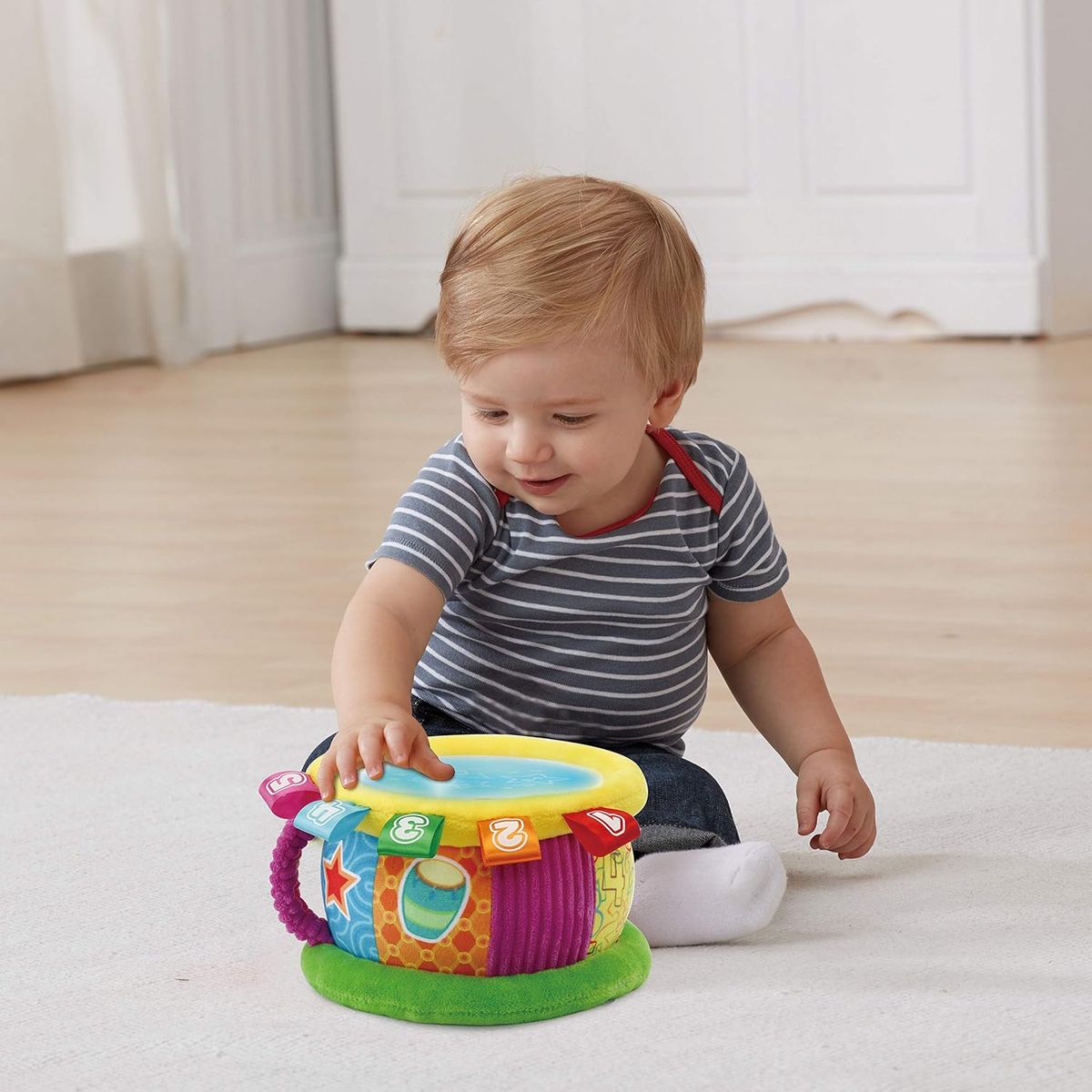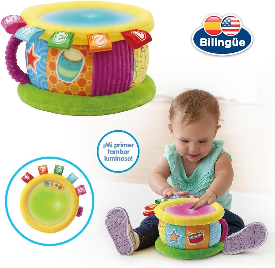 Divertente tamburo luminoso. Grazie alla combinazione di morbido tessuto e plastica, è un giocattolo ideale per i bambini. Musica a ogni battito del tamburo! Vedrai quanto è divertente suonare questo tamburo. Ogni volta che lo colpiscono, la sua superficie si illumina di colori diversi e impareranno i loro nomi e numeri. Grazie alla maniglia per il trasporto, puoi portarlo ovunque tu voglia. Spegnimento automatico per risparmiare le batterie. Per i più piccoli della famiglia, include più di 100 canzoni, melodie, suoni e frasi. Quando il bambino colpisce il tamburo, si attivano melodie e si illuminano. Le strisce di tessuto stimolano il loro sviluppo tattile. Toccando il tamburo e vedendolo cambiare colore, capiranno causa ed effetto. Grazie alle voci e alle canzoni, sviluppano il loro linguaggio e la loro comprensione. I colori vivaci e gli effetti luminosi catturano la loro attenzione. Controllo del volume e spegnimento automatico.