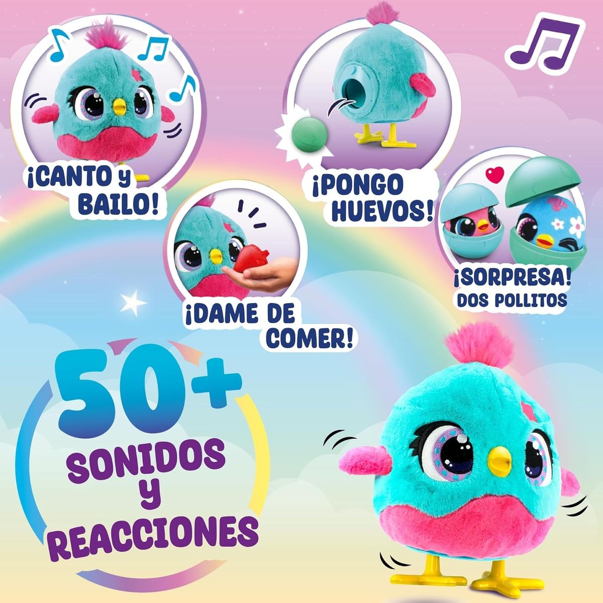 La gallina interattiva Chick-a-Boo Jenny di Funtasy Family è molto più di un semplice peluche. Progettata per stimolare il gioco e lo sviluppo emotivo, questa adorabile gallina diventa la compagna perfetta per bambine e bambini. Con le sue morbide piume e gli occhi espressivi, Jenny invita i più piccoli a immergersi in un mondo di divertimento e apprendimento. Interattività che sorprende e delizia. Jenny non solo canta e balla al ritmo di oltre 50 suoni e reazioni, ma offre anche un'esperienza interattiva unica. Nutrendo Jenny con il suo accessorio speciale, i bambini possono guardare questa chioccia deporre uova piene di pulcini a sorpresa. Ogni uovo è una nuova opportunità per scoprire un adorabile pulcino, aggiungendo emozione e sorpresa al gioco. Interagire con Chick-a-Boo Jenny non è solo divertente, ma promuove anche lo sviluppo emotivo di bambine e bambini. Prendendosi cura di Jenny e dei suoi pulcini, i più piccoli imparano l'empatia, la cura e la responsabilità. Inoltre, la risata di Jenny quando le fai il solletico sotto l'ala favorisce la connessione emotiva e la gioia condivisa.