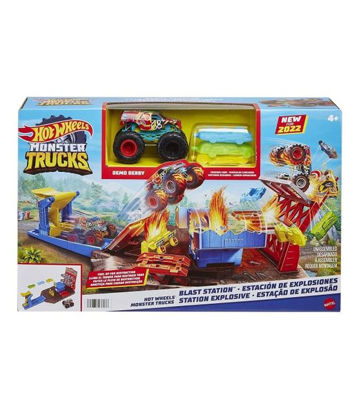 Preparati a saltare sopra fuoco ed esplosioni! Con la nuova Hot Wheels Monster Trucks Blast Station di Mattel! Il tuo marchio di macchinine preferito ti offre ancora una volta una sfida infuocata ad alta quota. Prendi il controllo del possente Demo Derby e affronta una sfida senza precedenti nella stazione di servizio più folle mai vista. Importante: i veicoli Hot Wheels aggiuntivi non inclusi nella confezione sono venduti separatamente. Allenati per una distruzione epica con la Hot Wheels Monster Trucks Blast Station, che porta gli scontri e le distruzioni a un livello senza precedenti. I bambini caricano i loro Hot Wheels Monster Trucks Demo Derby nel lanciatore, mirano e... BOOM! Colpisci le pompe di benzina o il cartellone pubblicitario e sfreccia verso la Blast Station. Le pompe di benzina con tubi mobili e un sollevatore a forbice regolabile aggiungono emozione all'esperienza mentre i bambini fanno rifornimento e si preparano prima o dopo essersi lanciati nella distruzione. Il playset include un Monster Truck HW Demo Derby in scala 1:64 e tre veicoli da incidente per iniziare a distruggere e distruggere fin da subito. Età consigliata: dai 4 anni in su. Include: un veicolo Demo Derby Monster Truck, tre auto distrutte colorate e un playset Blast Station con lanciatore, carro armato, rampe, fuoco e altri dettagli di gioco. Collezione: Hot Wheels Monster Trucks. Misure approssimative del veicolo Demo Derby: 6 cm di altezza, 5 cm di larghezza e 9 cm di lunghezza. Misure approssimative di ogni auto distrutta: 2 cm di altezza, 2,5 cm di larghezza e 7 cm di lunghezza.